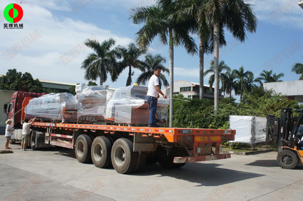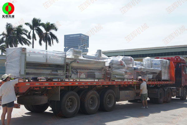 廣西某新建大型食品加工配送中心訂購的大批設備準備裝車駐場!設備涵蓋蔬菜分選、清洗、切割;瓜果削皮、去皮、清洗;肉類切割、排骨切丁;物料脫水、包裝等各類型食品前處理加工機械。該中心長期為當地一些學校、機關單位、餐廳、工廠飯堂等供應大批量凈菜。