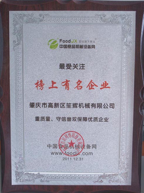 獲得中國食品設備網(wǎng)重質(zhì)量、守信譽雙保障優(yōu)*質(zhì)企業(yè)