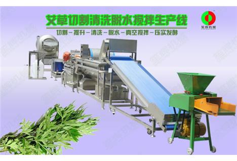 艾葉/艾草加工生產線,主要由切割設備,渦流清洗機,脫水機,真空滾揉機及壓實機組合成實用的流水線,半自動化生產過程,節省大量人力勞作,提高生產效率。